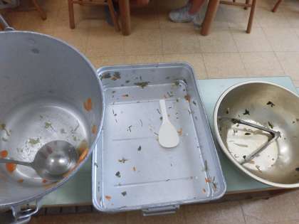そんな気持ちを形に表すために、空の食缶で返却する6年生です。