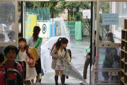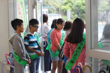 残念ながら今日も雨の朝となりましたが、たくさんの5年生が玄関付近に集結し、元気なあいさつ運動を展開しました。