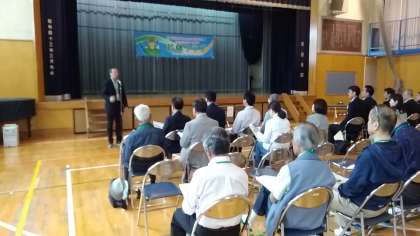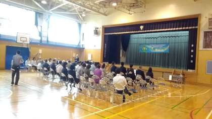 今日は若小の体育館で総会と設立5周年のお祝いが行われました。