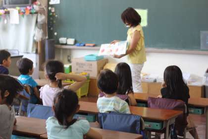 1年生のクラスには保護者の方が読み聞かせをしてくださっていました。