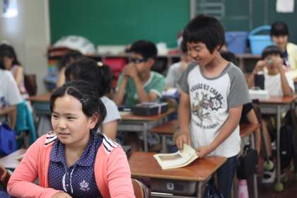 5年生は教科日本語の学習の中で「偶成」を朗読しました。