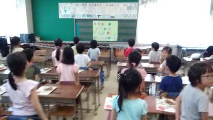伝統の若小校歌は、すっかり1年生に定着したようです。