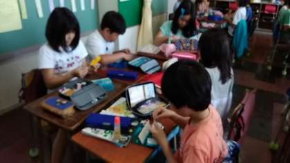 新たなツールである裁縫セットを手に、やる気満々の5年生。