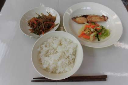【献立】ごはん・魚の照り焼き・ひとしお野菜・きんぴらごぼう・牛乳