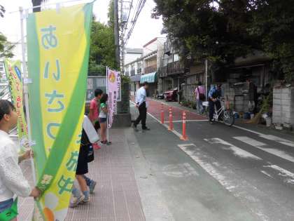 警邏中のお巡りさんは、子どもたちのあいさつに敬礼で返してくれました。
