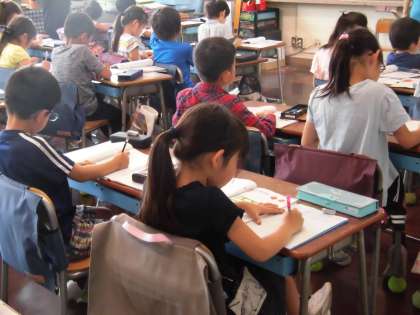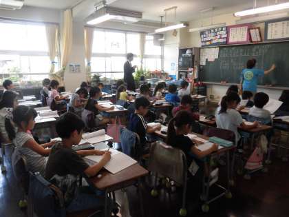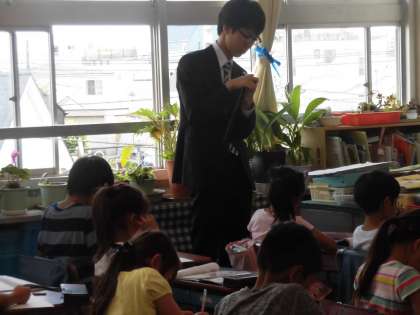 実習生は早速担当学級である2年1組に入っています。
