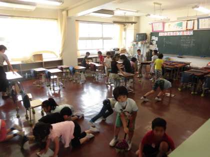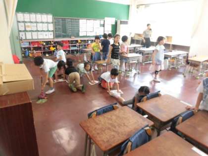 一生懸命に机を運び、掃いて、雑巾がけをします。