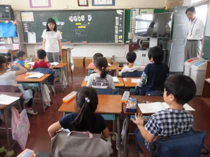 今日は校長先生と副校長先生が学習の様子を観に来てくれました。