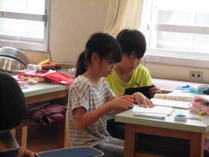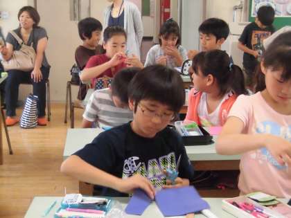 黙々と布に向かう5年生たちは、次にペンケースに挑戦!
