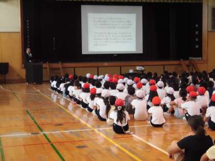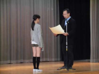 今日から読書旬間が始まりました。今日の全校朝会でも校長先生から読書に関するお話があり、みんな興味深げに聴き入っていました。たくさん本を読んで、心の栄養補給をしましょう!若小の子達が歯の健康について表彰を受けましたので、代表して保健委員会の委員長さんに賞状を受けてもらいました。