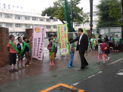 元気いっぱいのあいさつを受けて、みんな元気にあいさつを返していました。