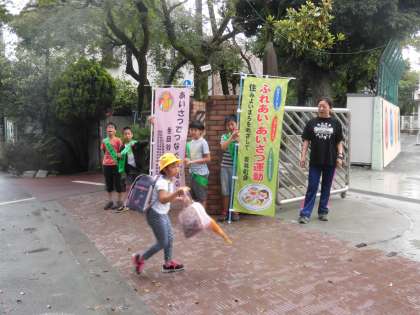 毎朝、3年生の子達が正門前であいさつ運動をしています。