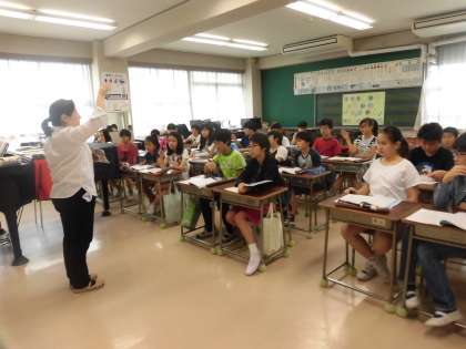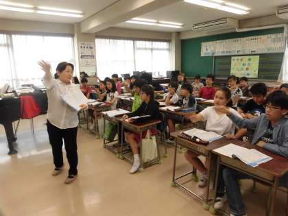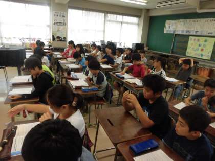 6年生は音楽の時間に曲を聴き、曲に合わせて指揮を振る練習をしました。