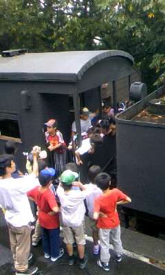 予定より早く10時に到着しました。そのおかげで動くSLに乗ることができました。しかも特別に抽選で4人の子が運転席に乗せてもらいました。