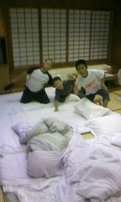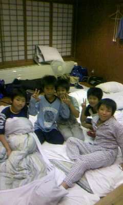 楽しかった1日目が終わろうとしています。班長会をやったあと、寝る準備になりました。部屋で若小オリンピックの続きのように舞いあがって担任から叱られた男の子もいました。やはり少し興奮ぎみです。