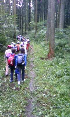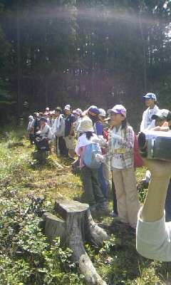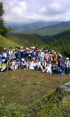 登山開始から約1時間。半分の中腹まできました。ここまで、沢がにを見たり、くまがはちみちを掘ったあとなどを見ました。また、ここはこだまがすごいんです。ヤッホ—!