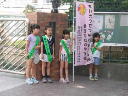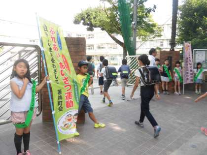 今年度から始まった学級別あいさつ運動も折り返し地点ですが、すっかり若小朝の光景になりました。