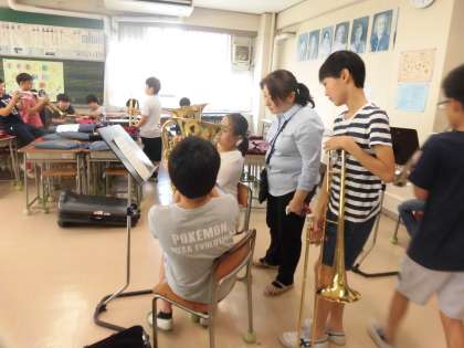 音楽室を中心にしてパート練習に励む6年生。