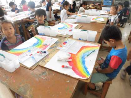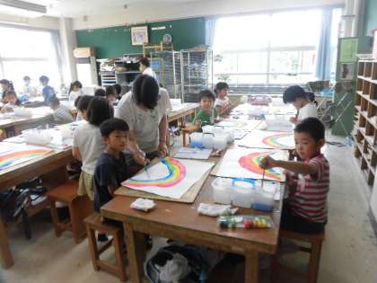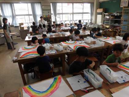 1年生が図工の時間に取り組んでいる水彩。