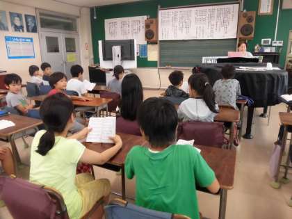 4年生は音楽の学習で歌のリクエストを楽しんでいます。
