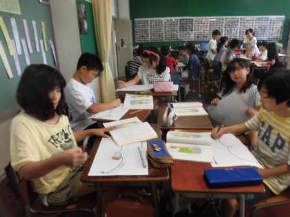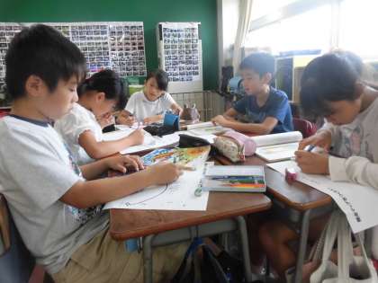 絵が得意な子も苦手な子も、白地図に上手に表すことができました。