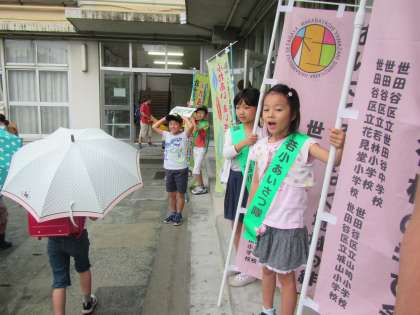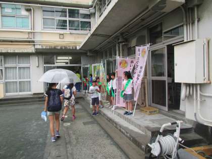 しかし2年1組の子達は元気いっぱいにあいさつ運動をしています。