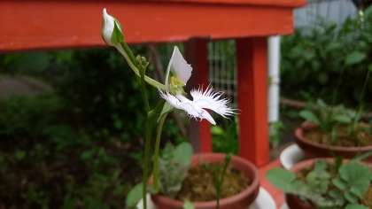 6年生が大切に育ててきたサギソウがついに美しい花をつけました。