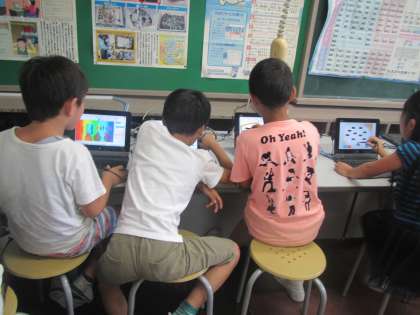 3年生は総合的な学習の時間にパソコン室に出かけました。