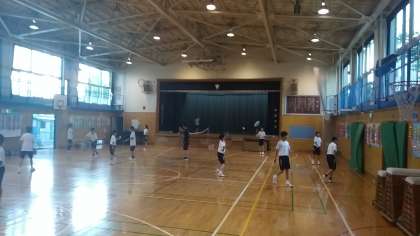 放課後、同じ杜の学び舎の世田谷中学校基礎トレーニング部の生徒さんたちが体育館にやってきました。
