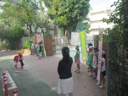 今日も2年2組の子達が元気にあいさつ運動をしました。