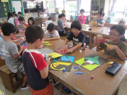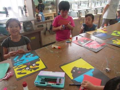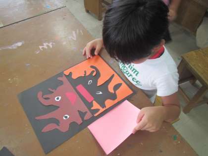 両面に色のついた色画用紙を使ってさかさまモンスターをつくったのです。