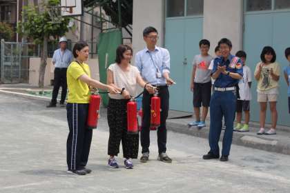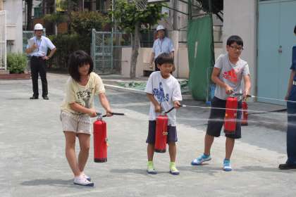そして代表の先生たちと子どもたちが、初期消火の練習をしました。