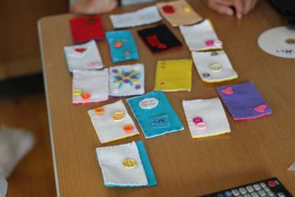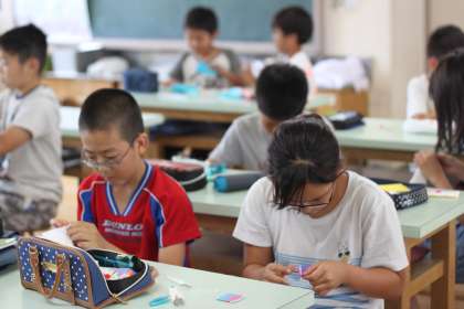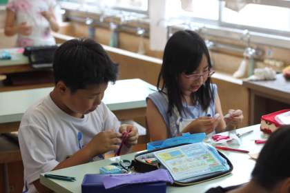 5年生は家庭科で、カードケースをつくりました。