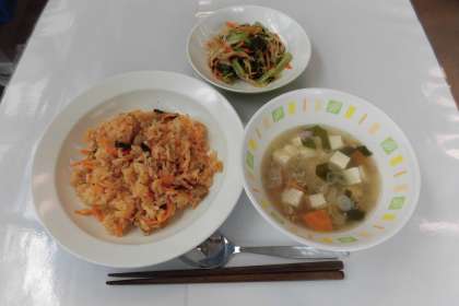【献立】キムチチャーハン・ナムル・わかめスープ・牛乳