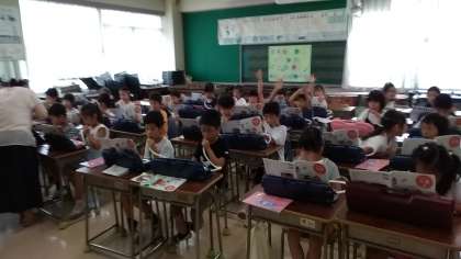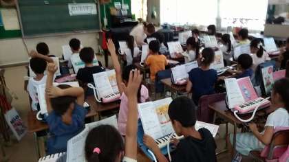 2年生の子達は音楽の時間に鍵盤ハーモニカを練習しています。