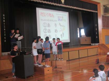 今朝の集会は、集会委員さんたちがゲーム集会を開いてくれました。