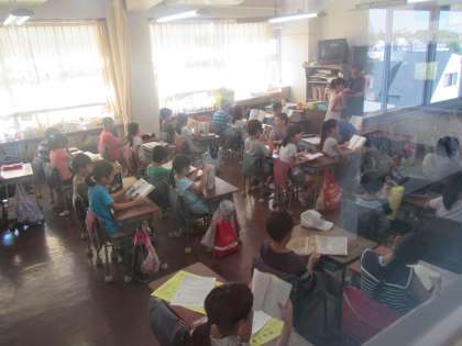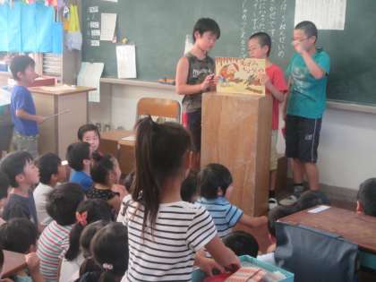 5年生は国語の学習の一環で、1年生の教室に行って読み聞かせ体験をさせてもらいました。