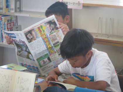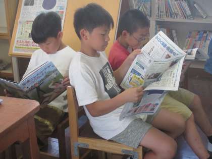 新聞を読む子もいます。