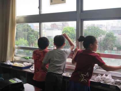 雷鳴と雨音に思わず校庭の様子を観る子がたくさんいました。