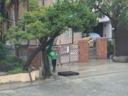 今日はちょうど下校時刻に雷雨があった為、下校時刻を遅らせる措置をとりました。