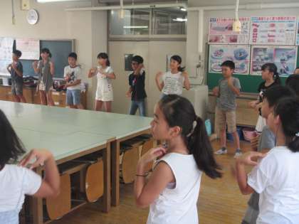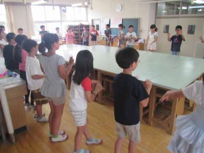 毎年、盆踊りで流れる曲をみんなでしっかりと踊りました。