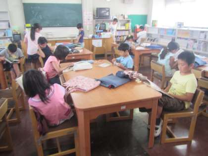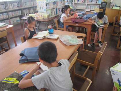 静かに過ごす4年生の読む本は、学年に相応しいものばかり。