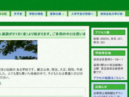 本日、若小ホームページは、開設以来60万アクセスを記録いたしました。