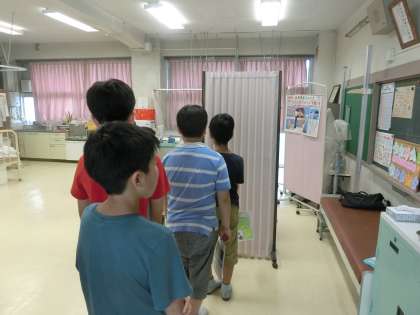 検診の前や後の時間には、同じ係の子供たちが自主的に集まり、打ち合わせをするなど、心強い一面を見せてくれました。