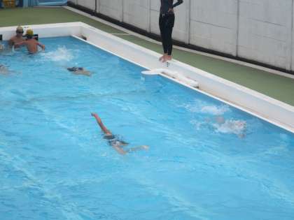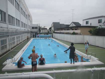 今日はちょっと涼しい気候ですが、既定の温度に達しているため、夏季水泳を行っています。