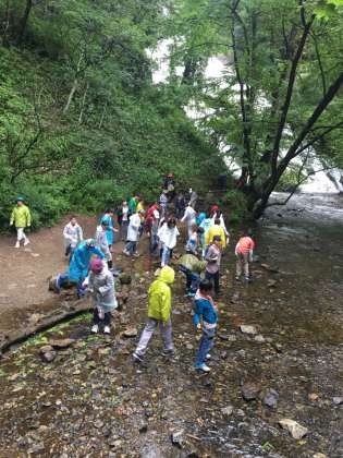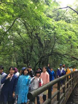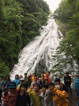 湯の湖から流れる湯滝は、雨の影響か、水量が多かったです!