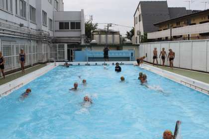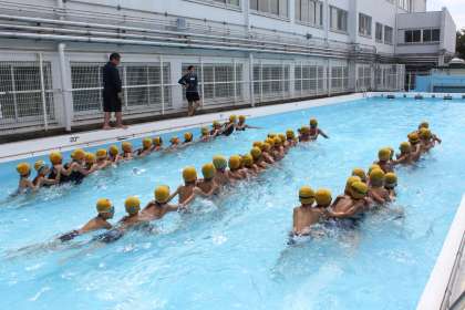 高学年は来るべき水泳記録会に向けて、しっかりと泳ぎこみをします。