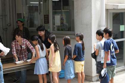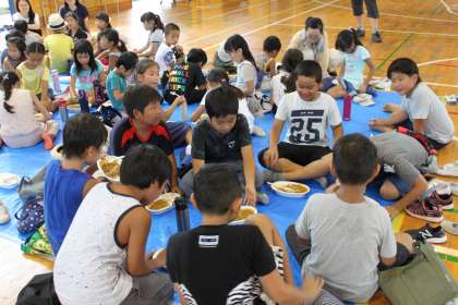最後にみんなでアルファ米を使った「防災カレー」をいただきます。