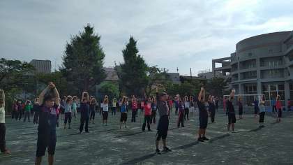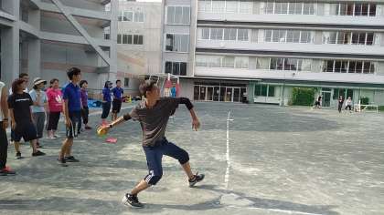 今日の午後、近隣の学校で集まって先生たちの体育研修会がありました。
