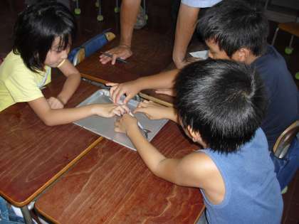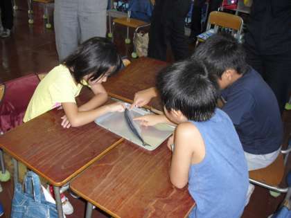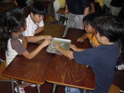 5時間目に、2年1組での食育の研究授業がありました。2年生は、魚について学習し、生のサンマを見たり、さわったりしました。今日の給食は、「サンマの生姜煮」でしたから、関連付けて学ぶことができました。魚にも旬があること、魚を食べると骨が丈夫になるなどよいことがあることを教えてもらいました。学習感想を見ると、「今日は、サンマを少ししか食べなかったけれども、この次は、もう少し食べたい。」「新鮮なサンマは、口のところが黄色いことがわかりました。」など魚について興味をもてたことがわかりました。今日は、2年1組の授業でしたが、先週2年2組も同じように勉強しています。